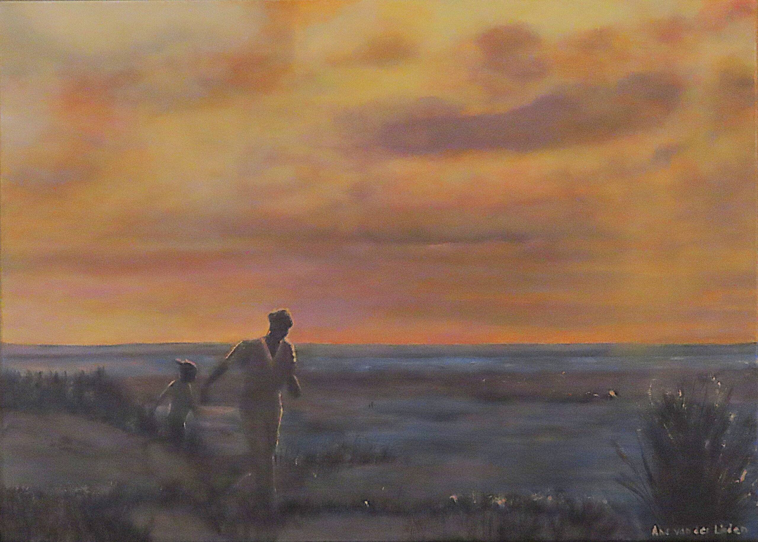 A beautifully coloured evening at Schiermonnikoog, an island in the north of The Netherlands. Mother and daughter are taking advantage of this romantic light to have a run near the beach.